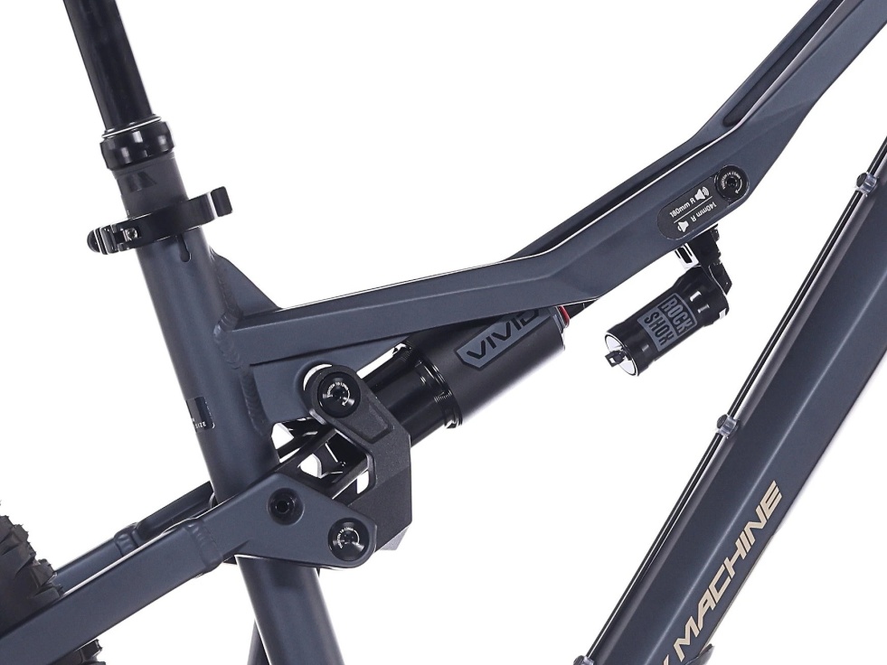 RÁM Tepelně vytvrzená hliníková slitina 6061-T6, dělená horní rámová trubka, volitelný zdvih odpružení (140/160/180), s plovoucím čepem, UDH