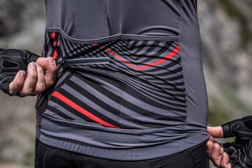 jízdě na kole výborně dostupné. V zadní prodloužené části dresu je