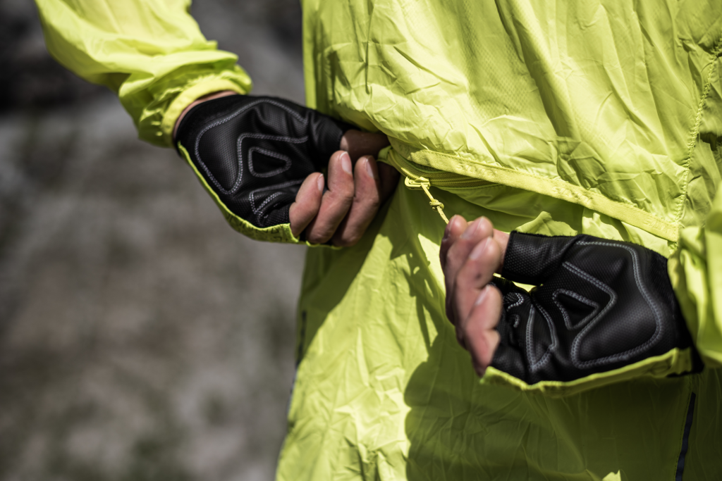 Pánská cyklistická bunda GELA je vyrobena z velmi lehkého a hustě tkaného materiálu (100% polyamide). Díky tomu je větruvzdorná a je tak lehká, že když ji máte na sobě, tak o ní téměř nevíte. Má dlouhý hlavní zip, který je na konci pod bradou překrytý ochrannou légou. Bundu můžete velmi snadno během několika vteřin sbalit do zadní kapsy. Sbalená bunda se vejde i do zadní kapsy na dresu a můžete ji tak mít u sebe při každé vyjížďce. Když je počasí opravdu nepříjemné, může vám posloužit kapuce, která je schovaná v límci. Stačí rozepnout zip a vyndat ji. Díky gumě v lemu kapuce vám perfektně přilne k hlavě. Límec je z vnitřní strany z počesaného materiálu.