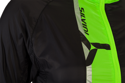 Díky tomu má výborné větru vzorné vlastnosti, a když máte bundu na sobě, tak o ní téměř nevíte. Bunda má dlouhý hlavní zip, který je na konci pod bradou překrytý ochranou légou. Bundu můžete velmi snadno během několika vteřin sbalit do zadní kapsy. Sbalená bunda se vám vejde i do zadní kapsy na dresu a můžete ji tak mít u sebe při každé vyjížďce. Když už je počasí opravdu nepříjemné může vám posloužit kapuce, která je schovaná v límci. Stačí rozepnout zip a vyndat ji. Díky gumě v lemu kapuce vám perfektně přilne k hlavě. Límec je z vnitřní strany z počesaného materiálu.