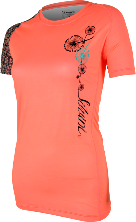 Dámské sportovní triko GIONA. Triko má velmi pěkný vzor a spolu s vypasovaným střihem oblečené výborně sedne. Triko s krátkým rukávem je vyrobeno z lehkého, velmi příjemného a prodyšného funkčního materiálu. Složením je z 93% z polyesteru a ze 7% z elastanu. To mu dodává pružnost. Aby se triko dobře nosilo, je sešito pomocí plochých švů. Potisk se pomocí sublimace tiskne do struktury materiálu, takže je pak barva mechanicky i chemicky odolná a umožňuje zvolit jakékoli barevné vzory.