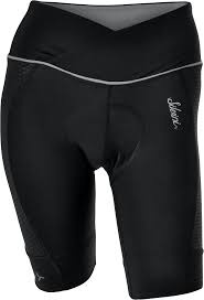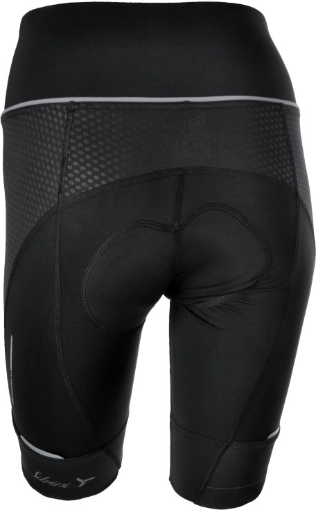 Dámské cyklistické šortky do pasu s širokým pasovým límcem a protiskluzovým páskem v dolní části nohaviček.