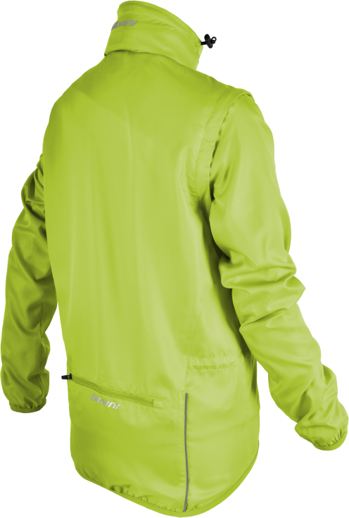 Technický popis reflexní prvky, kapsička na zip na zadním díle, stahování límce, stahování v pase, stahování dolního kraje, odepínací rukávy, dlouhý hlavní zip, dvě boční kapsy na zip, kapsa na prsou, možnost složení kapuce do límce, volný střih, sáček na sbalení bundy