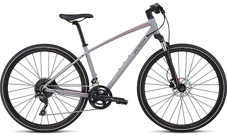 Specialized A1 SL Premium Aluminum, Fitness Geometry, fully-manipulated butted tubing, internal cable routing, flat mount disc, rack and Plug + Play fender mounts |