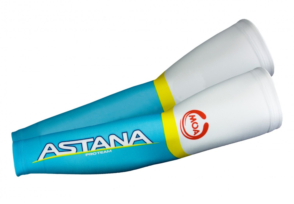 Cyklistické návleky na ruce v desingu profesionálního teamu Astana 2011.