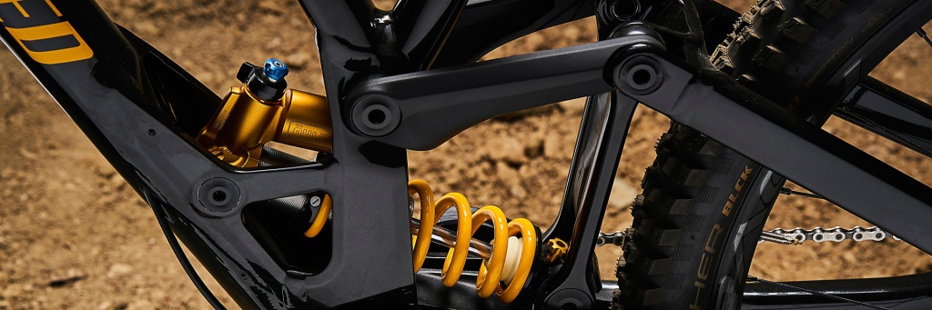 • Custom Öhlins TTX Trunnion zadní tlumič přináší bezkonkurenční DH výkon. Poskytuje možnost nastavení vysoko i nízko rychlostní kompese, která je nezávislá na nastavení odskoku, což umožňuje naladit tlumič na trati. Má 200mm pružinu, to je bezkonkurenční a nikde jinde to nenajdete.