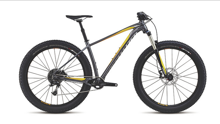 Specialized M4 Premium Aluminum, Trail 6Fattie Geometry, fully-butted w/ smooth welds, tapered head tube, tapered seat tube, forged 160mm disc mounts, 148mm thru-axle dropouts, replaceable alloy derailleur hanger |
