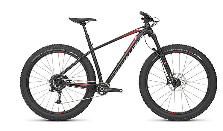 Specialized M4 Premium Aluminum, Trail 6Fattie Geometry, fully-butted w/ smooth welds, tapered head tube, tapered seat tube, forged 160mm disc mounts, 148mm thru-axle dropouts, replaceable alloy derailleur hanger |