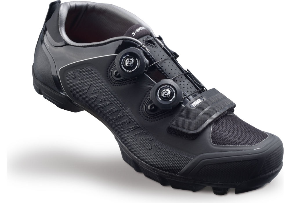 Nová tretra S-Works Trail kombinuje nízkou hmotnost a výkon obuvi cross-country s odolností, přilnavostí a ochranou, které jezdci pro agresivní jízdu v terénu vyžadují. Zvýšená ochrana prstů a kotníku společně se super výkonnou podrážkou Powerline z karbonového kompozitu umožňují cyklistům zdolávat stoupání i sjezdy v terénu.
