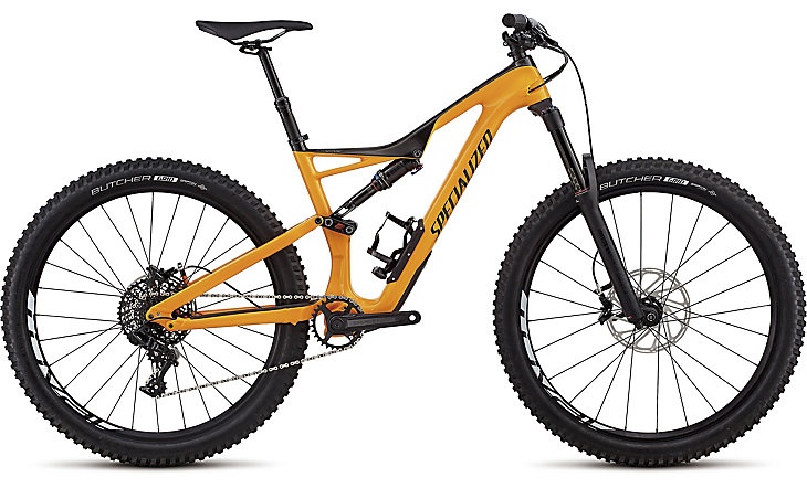 FACT 9m carbon front chassis w/ Specialized M5 Aluminum rear end, 27.5 Trail Geometry, SWAT™ Door integration, PF30 BB, fully enclosed internal cable routing, 12×148mm dropouts, sealed cartridge bearing pivots, replaceable derailleur hanger, 150mm of travel |
