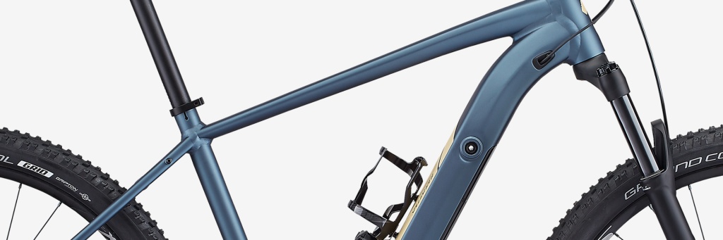 Specialized M5 Aluminum, 29 Trail HT Geometry, integrated down tube battery, enclosed internal cable, Command Post routing, 148mm spacing |