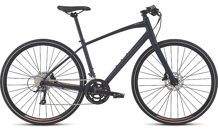 Specialized A1 Premium SL Aluminum, Women's Fitness Geometry, fully-manipulated butted tubing, internal cable routing, flat mount disc, QR, rack & Plug + Play fender mounts |