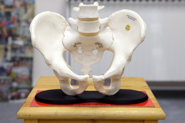 2. DÍKY VYZNAČENÝM DŮLKŮM změříme šíři mezi sedacími kostmi.