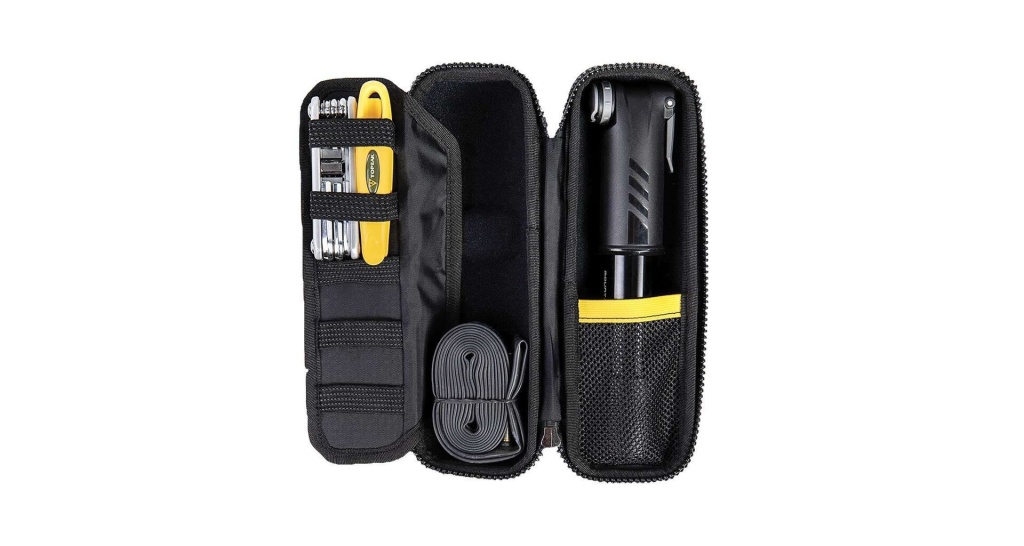 Praktická brašnička do košíku na láhev, obsahuje vyjimatelný organizér na nářadí a drobnosti.