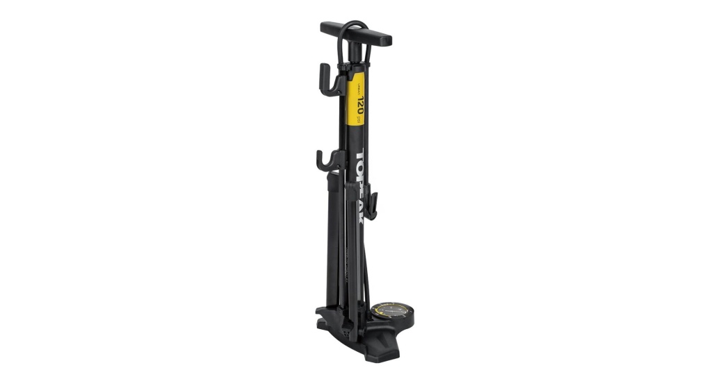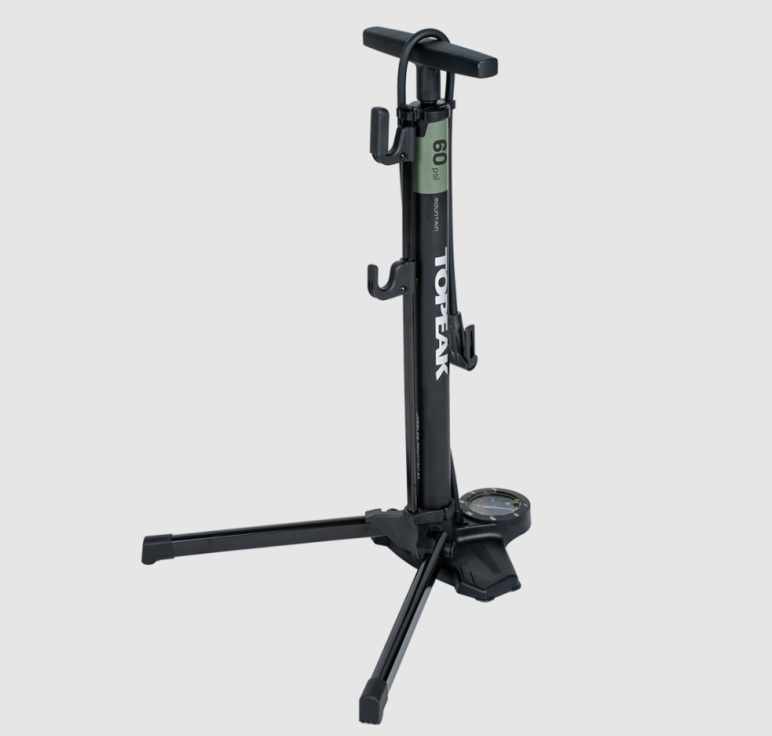 Dílenská pumpa JoeBlow Mountain EX s integrovaným stojanem na kolo pro snadnou údržbu kola. Hák na stojanu je vybaven gumovým obložením, aby nedošlo k poškození rámu kola. S nosností 30 kg a velkým objemem je vhodný zejména pro horská kola.