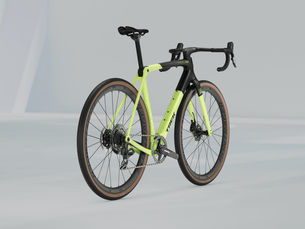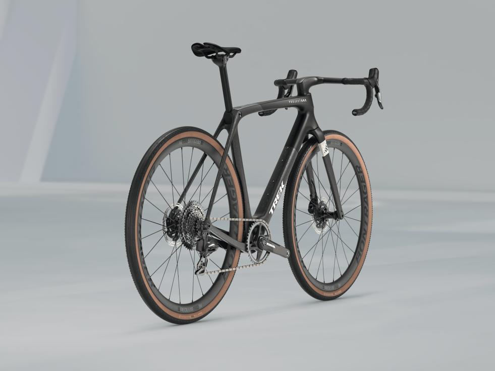 Lehký a aerodynamický rám z karbonu OCLV řady 800 s technologií IsoSpeed zaměřenou na pohodlí a se spoustou úchytů na přepravu potřebných věcí na závody. Karbonová kola Bontrager Aeolus Pro 3V a kombinace řídítek a představce Trek Aero RSL z karbonu zaručují lehkou a hbitou jízdu. Dále pohon SRAM XPLR AXS D2 s bezdrátovým řazením, který je určen pro drsnější silnice.
