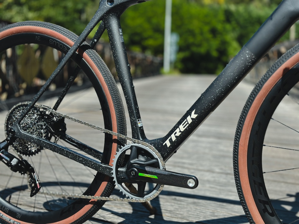 Lehký a aerodynamický rám z karbonu OCLV řady 800 s technologií IsoSpeed zaměřenou na pohodlí a se spoustou úchytů na přepravu potřebných věcí na závody. Karbonová kola Bontrager Aeolus Pro 3V a kombinace řídítek a představce Trek Aero RSL z karbonu zaručují lehkou a hbitou jízdu. Dále pohon SRAM XPLR AXS D2 s bezdrátovým řazením, který je určen pro drsnější silnice.