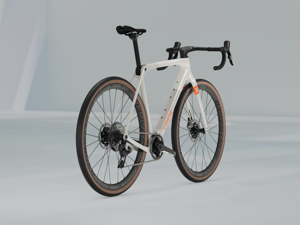 Lehký a aerodynamický rám z karbonu OCLV řady 800 s technologií IsoSpeed zaměřenou na pohodlí a se spoustou úchytů na přepravu potřebných věcí na závody. Karbonová kola Bontrager Aeolus Pro 3V a kombinace řídítek a představce Trek Aero RSL z karbonu zaručují lehkou a hbitou jízdu. Dále pohon 1x12 SRAM RED XPLR AXS s bezdrátovým řazením, který je určen pro drsnější silnice.