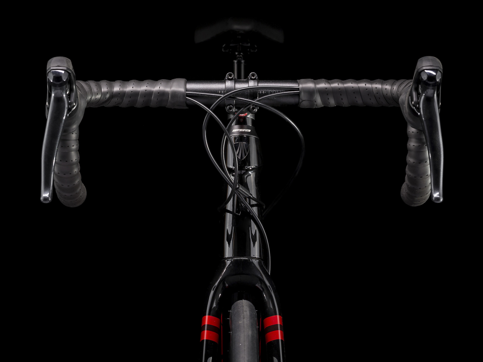 Lehký hliníkový rám Alpha řady 200 s obrovským prostorem pro pláště, karbonová kotoučová vidlice, 12mm pevné osy, pohon 2x9 Shimano Sora, úchyty na blatníky a nosiče, mechanické kotoučové brzdy Tektro pro brzdný účinek v každém počasí, kola umožňující použití bezdušových plášťů a pláště Bontrager R1 Hard-Case Lite 700x32.
