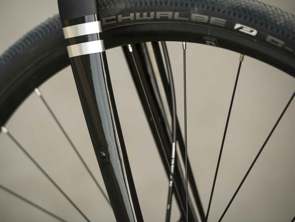 Hliníkový rám Alpha řady 300 s obrovským prostorem pro pláště a nastavitelnými patkami Stranglehold umožňujícími snadnou optimalizaci geometrie nebo použití jako singlespeed. Karbonová vidlice, 12mm pevné osy, 10rychlostní pohon Shimano Tiagra, kazeta 11-34 se širokým rozsahem ideální pro stoupání, úchyty na blatníky a nosič, hydraulické kotoučové brzdy s úchytem Flat Mount pro spolehlivý brzdný účinek za každého počasí a široké pláště 700x35 Schwalbe G-One pro vyšší stabilitu a trakci.