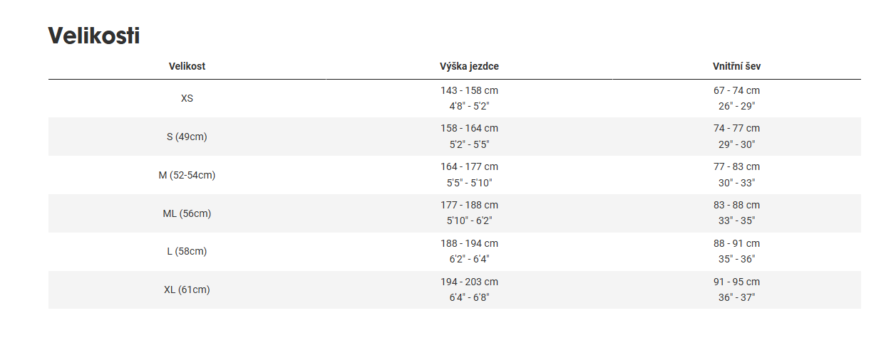 | Maximální velikost pláště | 50 mm bez blatníků, 42 mm s blatníky (dle našich měření, další podrobnosti uvedeny v příručce) |