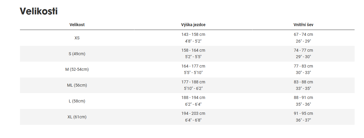 | Brzdový rotor | : Velikost: XS, S, M, ML, L, XL Shimano CL800, Centerlock, 160 mm. / Velikost: XS, S, M, ML, L, XL Shimano CL800, centerlock, 160 mm. |