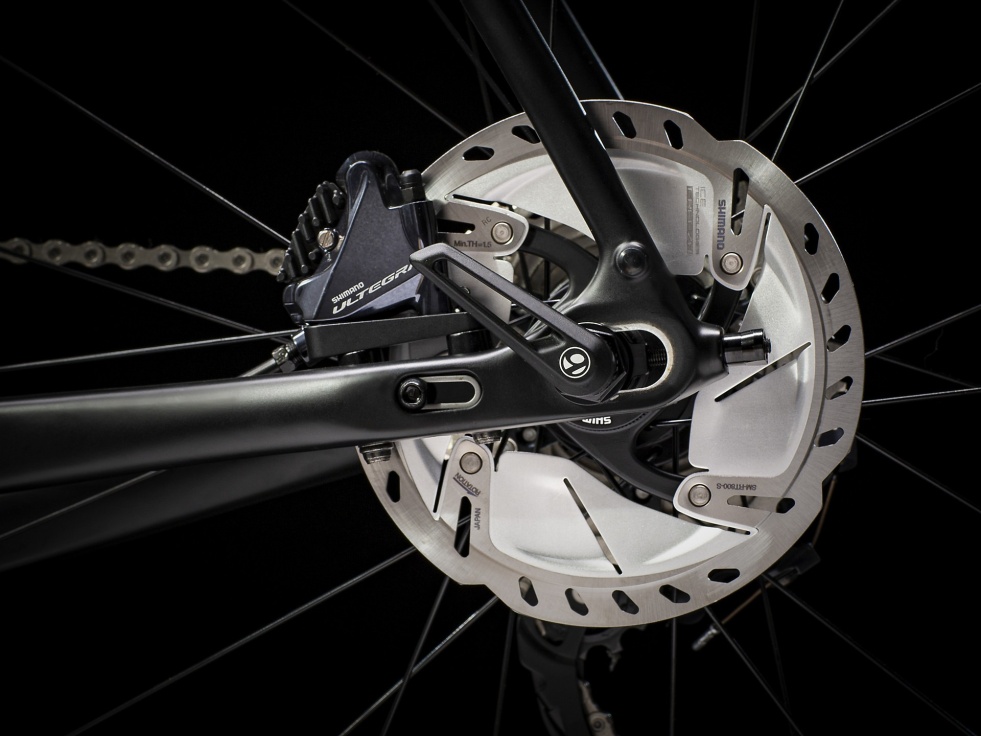 Rám z karbonu OCLV řady 500 se zadním prvkem IsoSpeed, kompletní sada Shimano Ultegra, výkonné hydraulické kotoučové brzdy s úchytem Flat Mount, kotoučová kola Bontrager Paradigm Comp Disc s pevnými osami 12 mm a široké pláště na štěrk 700x40 Bontrager GR1 Team Issue umožňující použití bezdušových plášťů, které zajišťují extra trakci a stabilitu. Vnitřní vedení lanek Control Freak a karbonový sedlový nástavec.