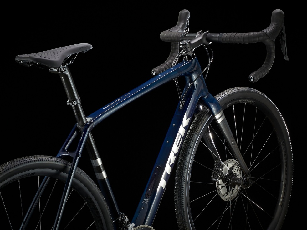 Rám z materiálu OCLV Carbon řady 500 se zadním prvkem IsoSpeed, sadu komponent řazení Shimano GRX s širokým rozsahem převodů, účinné hydraulické kotoučové brzdy, řídítka pohlcující vibrace a kola Bontrager Paradigm Comp Disc s vnitřní šířkou ráfku 25 mm a širokými gravelovými plášti 700x40c, které se postarají o mimořádnou přilnavost a stabilitu.