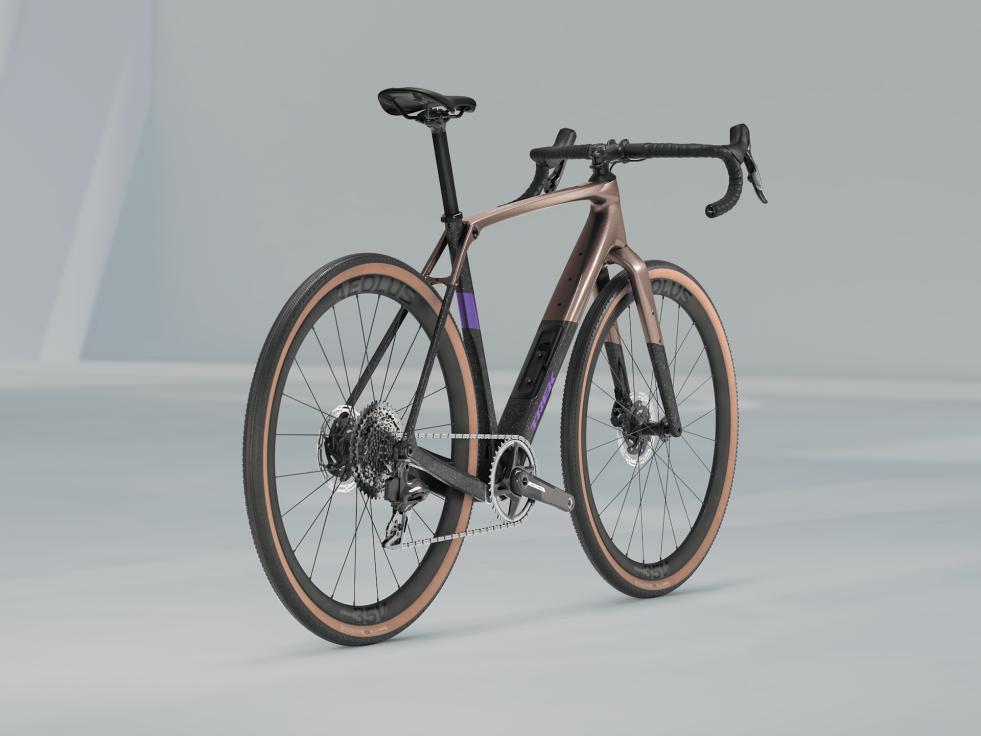 Rám z karbonu OCLV řady 500 s karbonovou vidlicí, vnitřním úložným prostorem ve spodní rámové trubce, místem pro 50mm pláště (naměřeno) a úchyty na rámu a vidlici. 12rychlostní zcela bezdrátový pohon 1x SRAM Force XPLR AXS, hydraulické kotoučové brzdy, karbonová sedlovka a kola Bontrager Aeolus Elite 35V se 42mm plášti připravená na bezdušovou verzi.