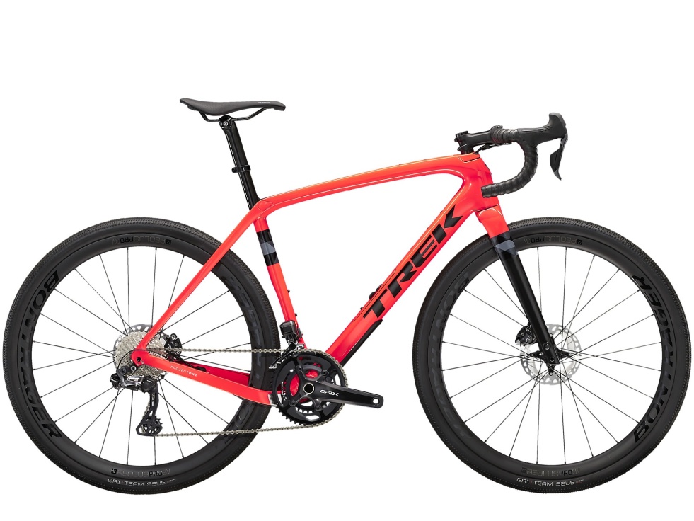 Rám z karbonu OCLV řady 700 s předním prvkem IsoSpeed a karbonovou ochranou, progresivní geometrie, která je stabilní při vysokých rychlostech a účinná při náročném stoupání, vnitřní úložný prostor, skrytá lanka, která nepřekážejí brašnám, úchyty na brašny integrované v rámu a úchyty na blatníky. Dále karbonová vidlice, pohon 2x11 Shimano GRX určený na drsnou jízdu a kola Bontrager Aeolus Pro 3V z karbonu OCLV se širokými gravelovými plášti 700x40c pro lepší trakci a stabilitu. Pojme až 45c pláště.