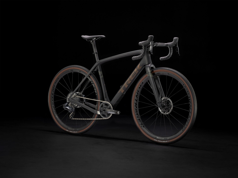 Rám z karbonu OCLV řady 700 s předním prvkem IsoSpeed a ochranou Carbon Armor, progresivní geometrii, která se postará o stabilitu při vysokých rychlostech a účinnost při stoupáních, vnitřní úložný prostor, skrytá lanka, jež nepřekážejí brašnám, a integrované úchyty na rámovou brašnu a blatníky. Dál pak karbonovou vidlici, bezdrátový elektronický pohon 2x12 SRAM Force eTap AXS s kazetou s velkým rozsahem převodů a kola Bontrager Aeolus Pro 3V z karbonu OCLV s širokými štěrkovými plášti 700x40c, které trakci a stabilitu posunou na další úroveň. Pojme pláště až do velikosti 45c.