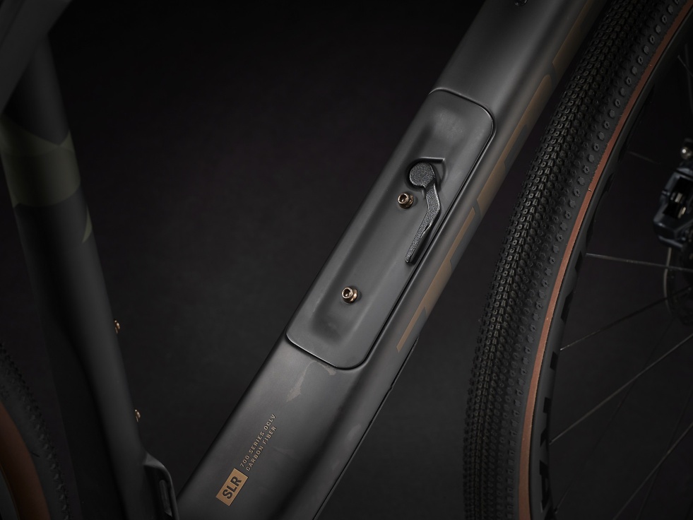 Rám z karbonu OCLV řady 700 s předním prvkem IsoSpeed a ochranou Carbon Armor, progresivní geometrii, která se postará o stabilitu při vysokých rychlostech a účinnost při stoupáních, vnitřní úložný prostor, skrytá lanka, jež nepřekážejí brašnám, a integrované úchyty na rámovou brašnu a blatníky. Dál pak karbonovou vidlici, bezdrátový elektronický pohon 2x12 SRAM Force eTap AXS s kazetou s velkým rozsahem převodů a kola Bontrager Aeolus Pro 3V z karbonu OCLV s širokými štěrkovými plášti 700x40c, které trakci a stabilitu posunou na další úroveň. Pojme pláště až do velikosti 45c.