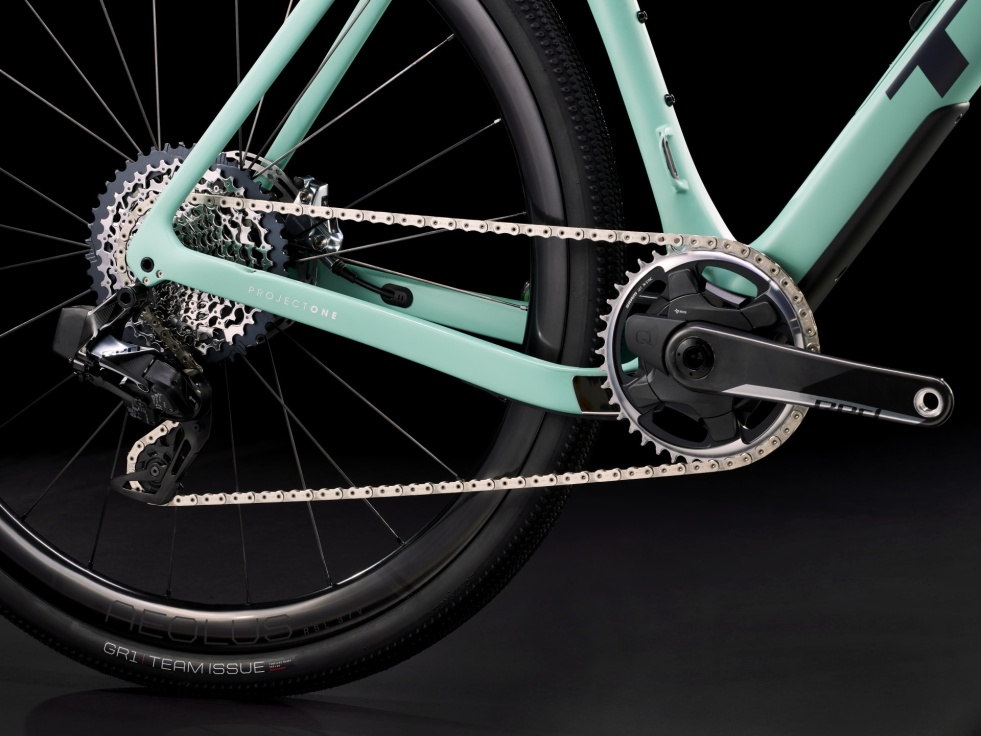 Rám z karbonu OCLV řady 700 s prvkem IsoSpeed a ochranou Carbon Armor, progresivní geometrií, která se postará o stabilitu při vysokých rychlostech a účinnost při stoupáních, vnitřní úložný prostor, skryté kabely, jež nepřekážejí brašnám, a integrované úchyty na rámovou brašnu a blatníky. Dále pak karbonová vidlice, bezdrátové elektronické řazení 1x12 SRAM RED AXS s kazetou s velkým rozsahem převodů a karbonová kola Bontrager Aeolus RSL 37V se širokými gravelovými plášti 700x40c pro lepší trakci a stabilitu. Pojme pláště až do velikosti 45c.