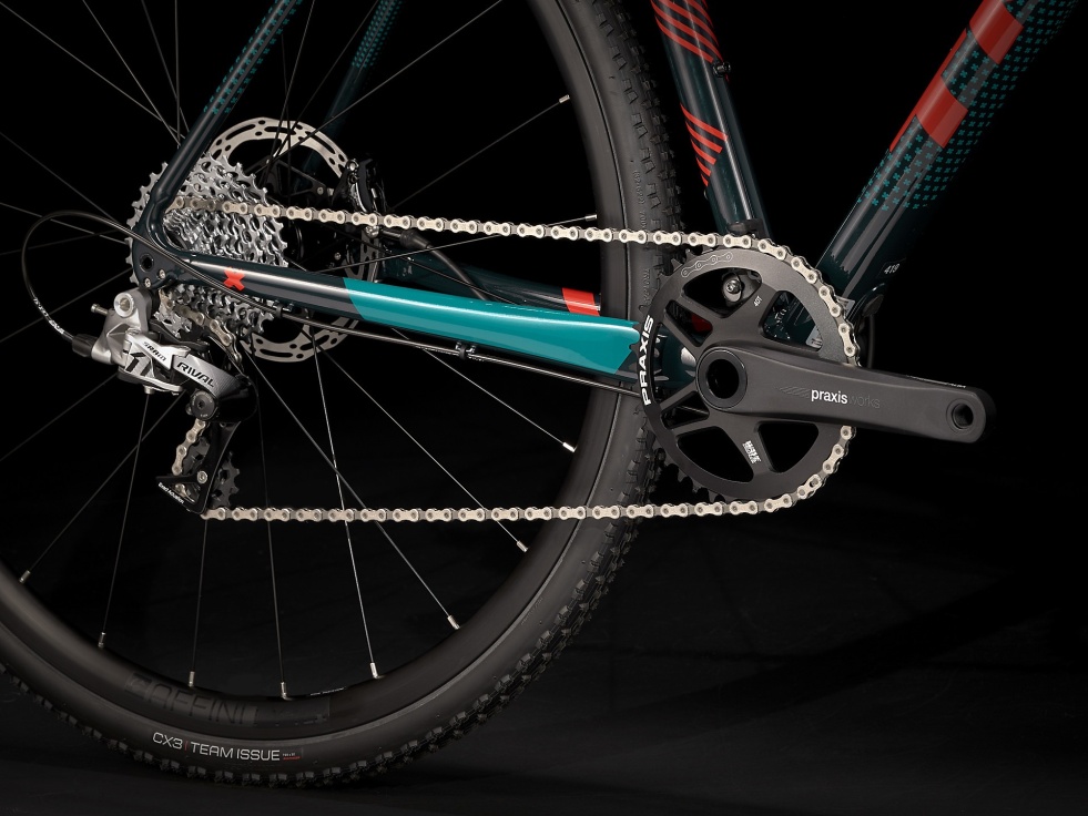 Lehký a odolný rám z materiálu Alpha Aluminum řady 300 s tvarovanými trubkami a technologií nenápadných svarů, 12mm pevné osy, celokarbonovou vidlici Trek Cross, účinné hydraulické kotoučové brzdy s úchytem Flat Mount a praktičnost osazení 1x11 s páčkami a řazením SRAM Rival.