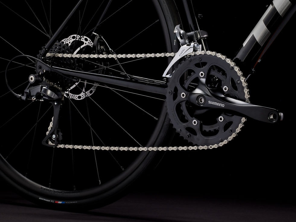 Pohon Shimano nabízí 16 rychlostí s řadicími páčkami integrovanými do brzdových páček, takže není třeba přesouvat ruce z řídítek. Široký rozsah převodů usnadňuje jízdu v terénu s různým převýšením. Lehký hliníkový rám má úchyty na blatníky a karbonovou vidlici. Jedná se o prvky, které není běžně vidět na silničních kolech za tuto cenu. Oproti ráfkovým brzdám nabízejí kotoučové brzdy lepší a spolehlivější brzdný účinek ve všech jízdních podmínkách.