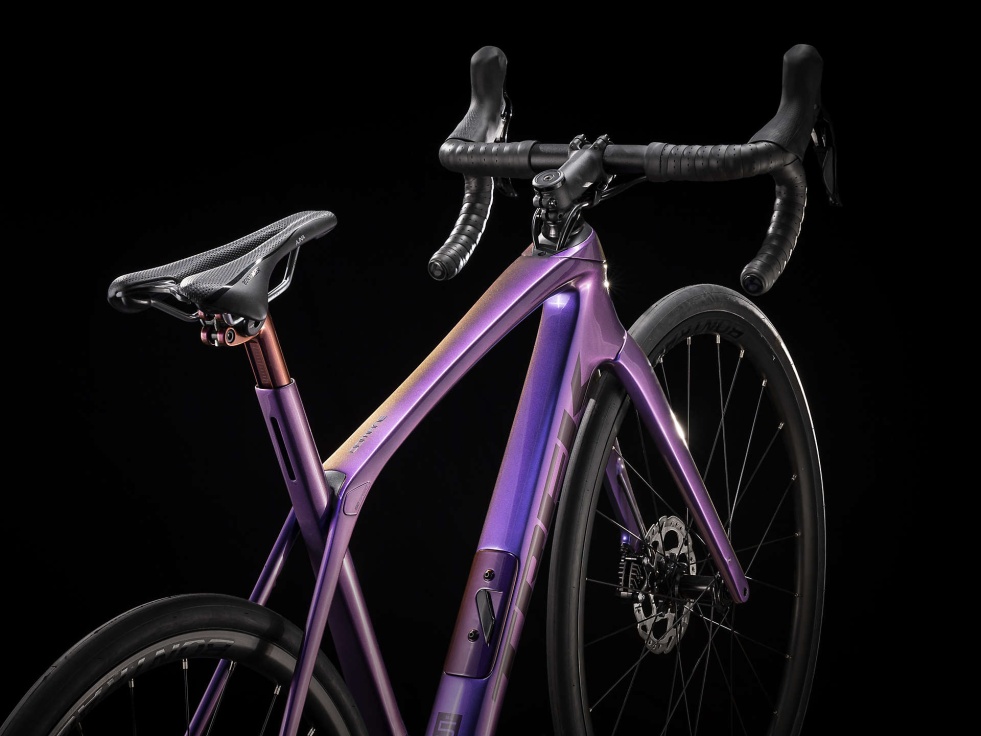 Domane SL 5 nabízí hladkou jízdu, rychlost a univerzálnost. Lehký rám z karbonu OCLV má přední a zadní prvek IsoSpeed, který vyhlazuje nerovnosti povrchu a minimalizuje únavu, takže v sedle vydržíte déle při plné síle. Má vylepšený pohon Shimano 105, kotoučové brzdy pro brzdný výkon do každého počasí a vnitřní úložný prostor se snadným přístupem k ukládání nezbytností pro jízdu.