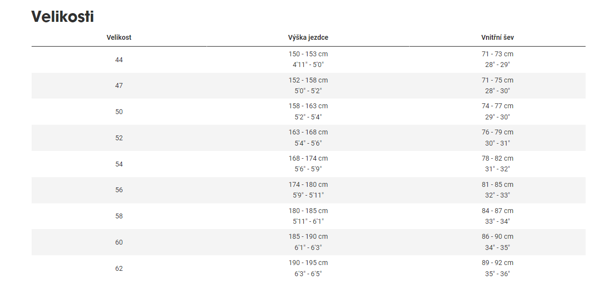 Představec : Velikost: 44 Trek RCS Pro, –7 stupňů, délka 60 mm. / Velikost: 47 Trek RCS Pro, –7 stupňů, délka 70 mm. / Velikost: 50 Trek RCS Pro, –7 stupňů, délka 80 mm. / Velikost: 52, 54 Trek RCS Pro, –7 stupňů, délka 90 mm. / Velikost: 56, 58 Trek RCS Pro, –7 stupňů, délka 100 mm. / Velikost: 60, 62 Trek RCS Pro, –7 stupňů, délka 110 mm.