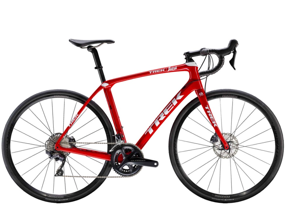 Náš nejlehčí rám z OCLV karbonu řady 600 a přední a nastavitelné zadní odpružení IsoSpeed. Je vybaveno plnou sadou komponent Shimano 2x11 Ultegra, hydraulickými diskovými brzdami s úchytem Flat Mount, koly Paradigm Comp Disc umožňujícími použití bezdušových plášťů, širokými plášti 700x32 nabízejícími větší stabilitu na nerovných površích a karbonovými řídítky Bontrager Pro IsoCore tlumící vibrace o 20 % ve srovnání se standardními karbonovými řídítky.