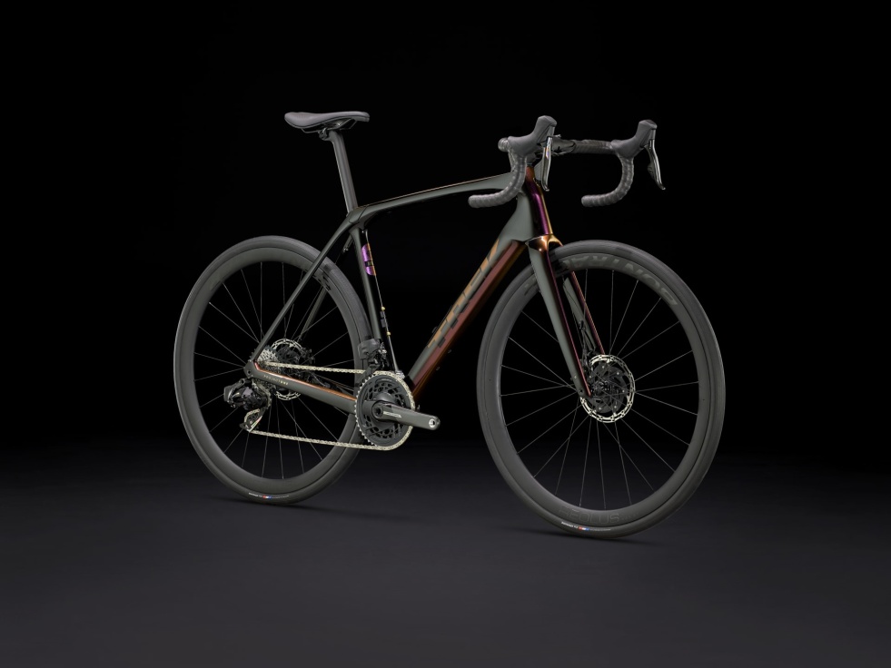 Mimořádně lehký propracovaný rám a vidlice z karbonu OCLV řady 800, zadní prvek IsoSpeed, integrovaný vnitřní úložný prostor a úchyty na horní rámové trubce. Kolo je vybaveno bezdrátovým elektronickým pohonem 2x12 SRAM Force AXS D2, klikami s wattmetrem pro sledování výkonu, účinnými kotoučovými brzdami s úchytem Flat Mount, karbonovými koly Aeolus Pro 37 a řídítky Bontrager Pro IsoCore tlumícími vibrace o 20 % víc než standardní karbonová řídítka.