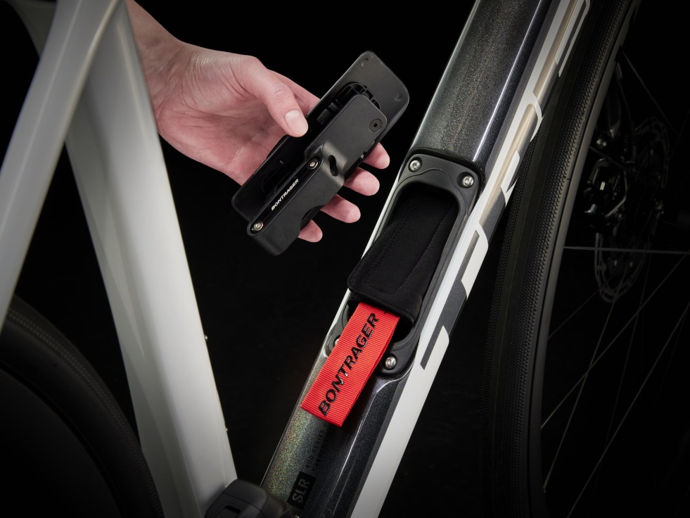 4. V praktickém vnitřním úložném prostoru lze převážet nářadí a vybavení. Úchyty na horní trubce dále umožňují připevnit brašnu na celodenní jízdy.