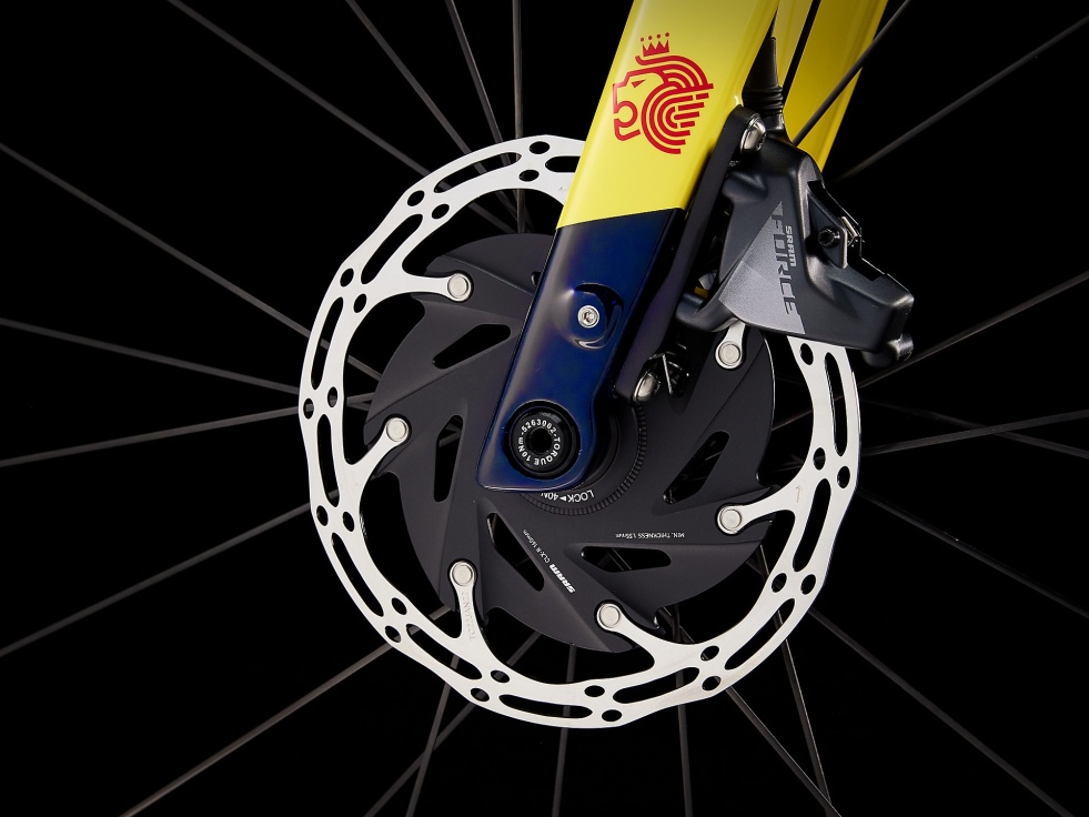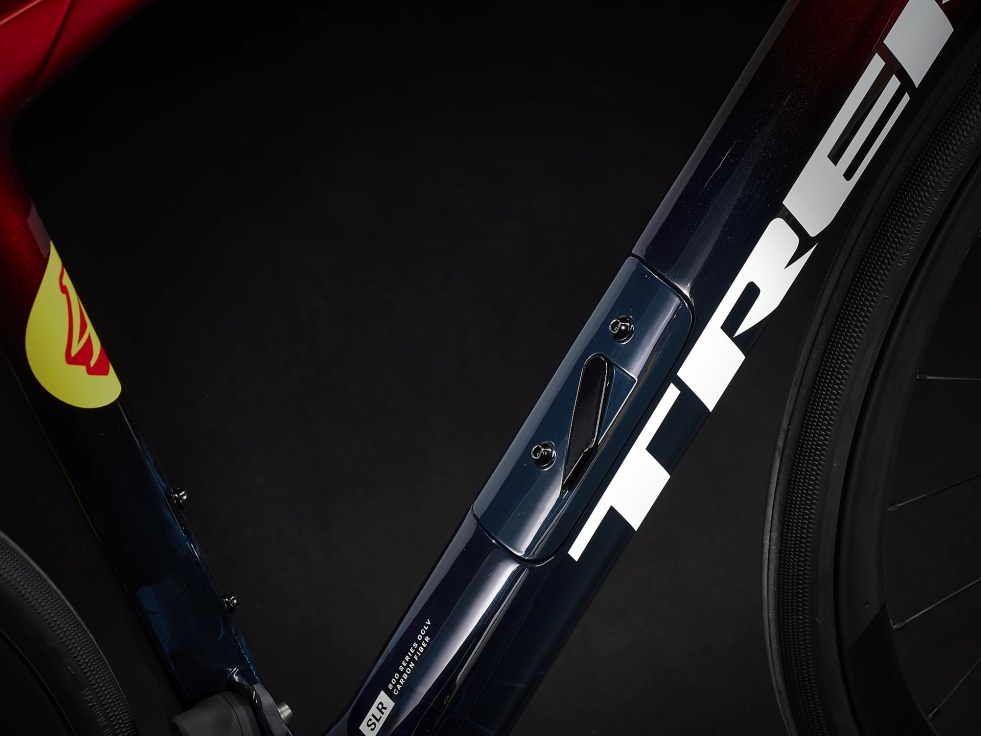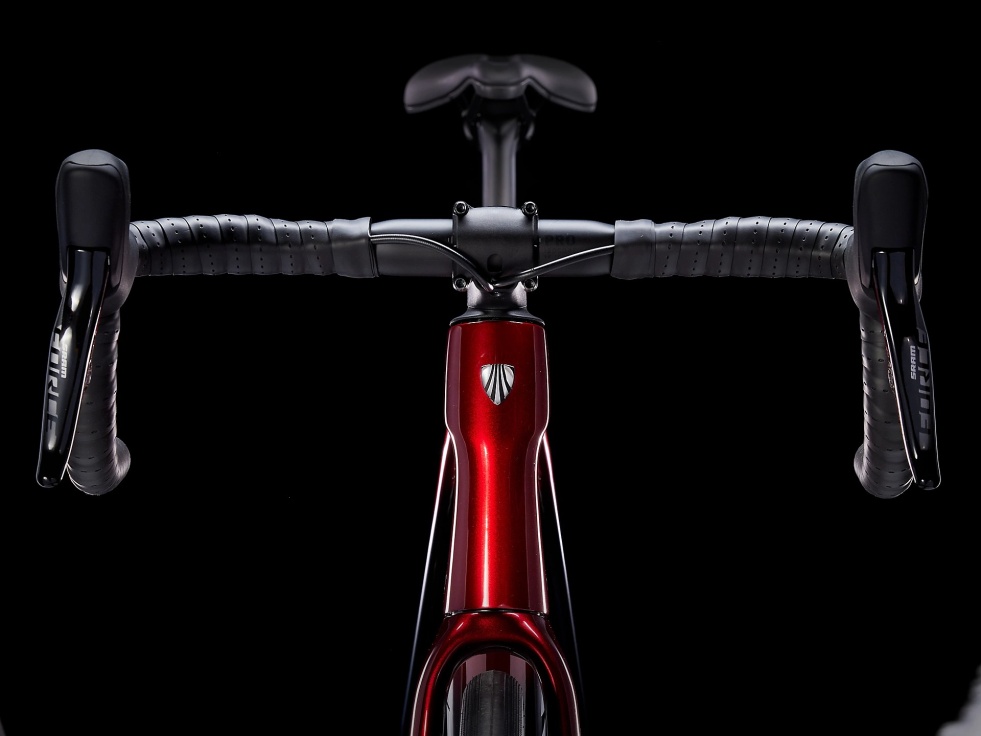 Mimořádně lehký propracovaný rám z karbonu OCLV řady 800, vidlice se zadním prvkem IsoSpeed, integrovaný vnitřní úložný prostor a úchyty na horní rámové trubce. Kolo je osazeno bezdrátovým elektronickým řazením 2x12 SRAM Force eTap AXS, měřičem výkonu, účinnými kotoučovými brzdami s úchytem Flat Mount, karbonovými koly Aeolus Pro 37 a řídítky Bontrager Pro IsoCore tlumícími vibrace o 20 % víc než standardní karbonová řídítka.