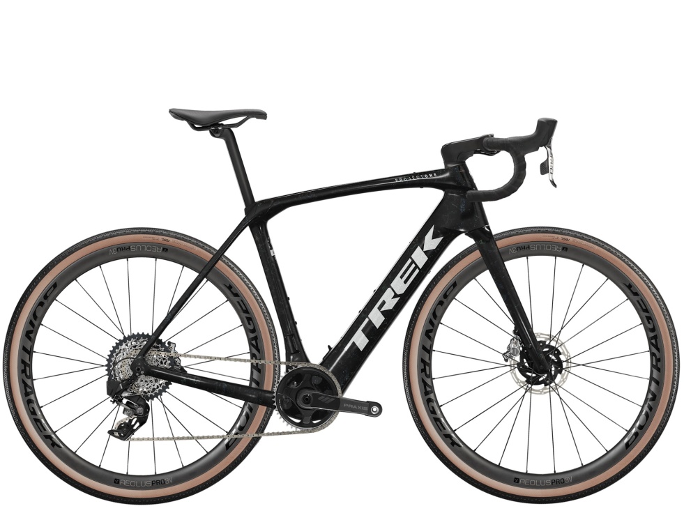 Lehoučký rám z karbonu OCLV řady 800 se zadním prvkem IsoSpeed. Výkonný 50Nm vřetenový harmonický motor TQ na podporu šlapání až do 25 km/h, integrovaná 360Wh baterie, integrovaný chytrý LED displej a nenápadné ovladače na řídítkách pro přepínání režimů podpory. Kola Aeolus Pro 3V z karbonu OCLV, bezdrátové elektronické řazení 1x12 SRAM RED AXS předchozí generace, karbonové kliky, řídítka Bontrager Pro IsoCore tlumící vibrace a představec RCS Pro s integrovanými lanky pro elegantní vzhled.