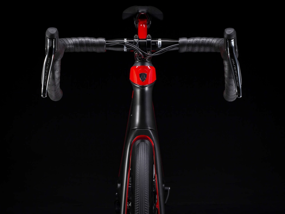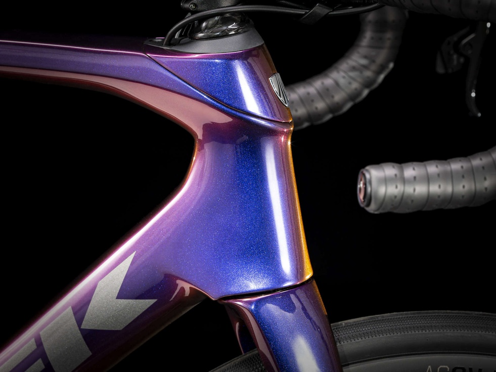 Náš nejlehčí rám z karbonu OCLV řady 700 a přední a nastavitelné zadní odpružení IsoSpeed. Kolo je vybaveno zcela elektronickým pohonem Shimano Dura-Ace Di2 pro dokonalé řazení, kotoučovými brzdami s úchytem Flat Mount, koly Bontrager Aeolus XXX 4 a řídítky Bontrager Pro IsoCore, která snižují vibrace o 20 % ve srovnání se standardními karbonovými řídítky. Vnitřní úložný prostor a vedení lanek zvyšují elegantní vzhled kola.