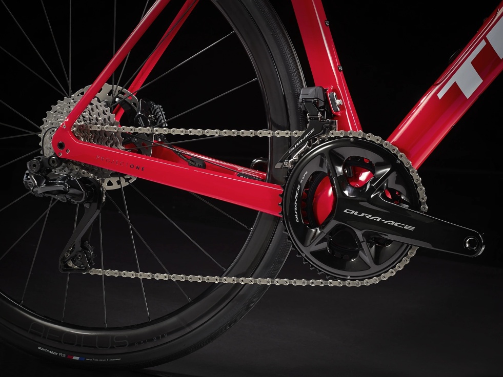 | Zadní kolo | Bontrager Aeolus RSL 51, karbon OCLV, možnost použití bezdušových plášťů, výška ráfku 51 mm, ořech Freehub Shimano 11/12 rychlostí, pevná osa 142 × 12 mm |
