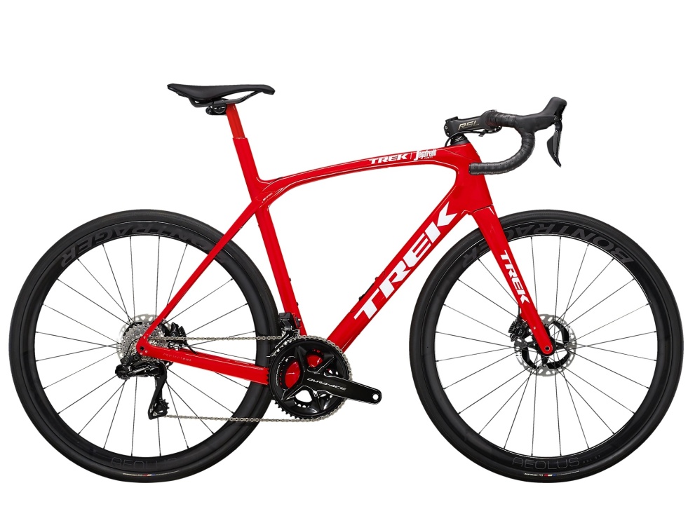 Náš nejlehčí rám z karbonu OCLV řady 700 s předním a nastavitelným zadním prvkem IsoSpeed. Má zbrusu nový bezdrátový elektronický pohon Shimano Dura-Ace Di2 s dokonalým řazením, kotoučové brzdy s úchytem Flat Mount, karbonová kola Bontrager Aeolus RSL 37 a řídítka Bontrager Pro IsoCore, která v porovnání s běžnými karbonovými řídítky ztlumí o 20 % víc vibrací. Vnitřní úložný prostor a vedení lanek zvyšují elegantní vzhled kola.