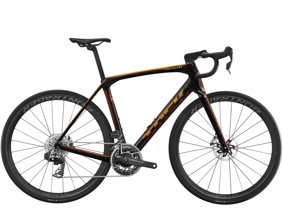 Mimořádně lehký propracovaný rám a vidlice z karbonu OCLV řady 800, zadní prvek IsoSpeed, integrovaný vnitřní úložný prostor a úchyty na horní rámové trubce. Kolo je vybaveno bezdrátovým elektronickým pohonem SRAM RED AXS, klikami s wattmetrem pro sledování výkonu, účinnými kotoučovými brzdami s úchytem Flat Mount, karbonovými koly Aeolus Pro 37 a řídítky Bontrager Pro IsoCore tlumícími vibrace o 20 % víc než standardní karbonová řídítka.