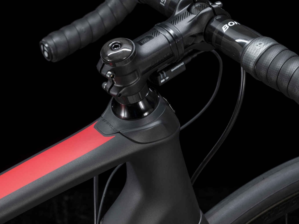 Náš nejlehčí rám z OCLV karbonu řady 600 a přední a nastavitelné zadní odpružení IsoSpeed. Kolo Domane SLR 9 Disc je vybaveno plnou elektronickou sadou komponent Shimano Dura-Ace Di2 pro dokonalé řazení, kotoučovými brzdami s úchytem Flat Mount, koly Aeolus Pro 3 D3 Disc umožňujícími použití bezdušových plášťů a řídítky Bontrager IsoCore, která snižují vibrace o 20 % ve srovnání se standardními karbonovými řídítky.