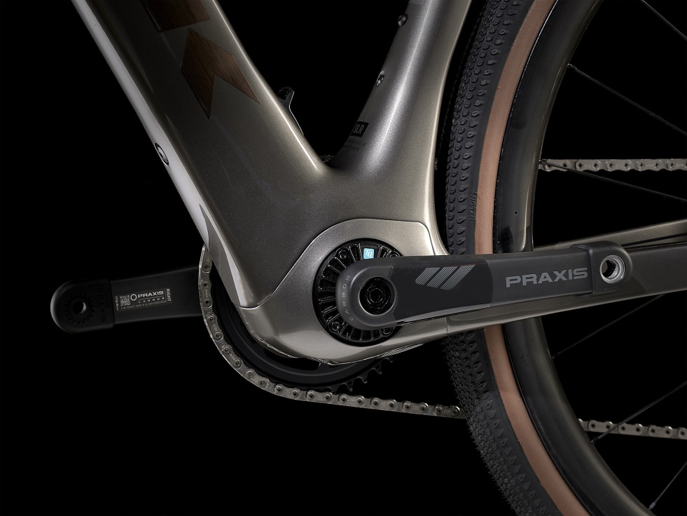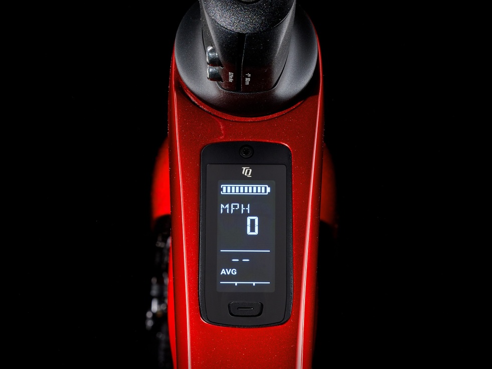 Náš nejlepší a nejlehčí rám z karbonu OCLV řady 800 a vidlici se zadním prvkem IsoSpeed. Motor TQ s harmonickou válečkovou převodovkou (360 Wh, 50 Nm), integrovanou baterii, chytrý integrovaný LED displej, nenápadný ovladač na páčce pro přepínání režimů podpory, kola Aeolus RSL 37V z karbonu OCLV, bezdrátovou elektronickou sadu SRAM RED eTap AXS, karbonové kliky, řídítka Bontrager Pro IsoCore tlumící vibrace a představec RCS Pro s bowdeny vedenými uvnitř pro elegantní vzhled.