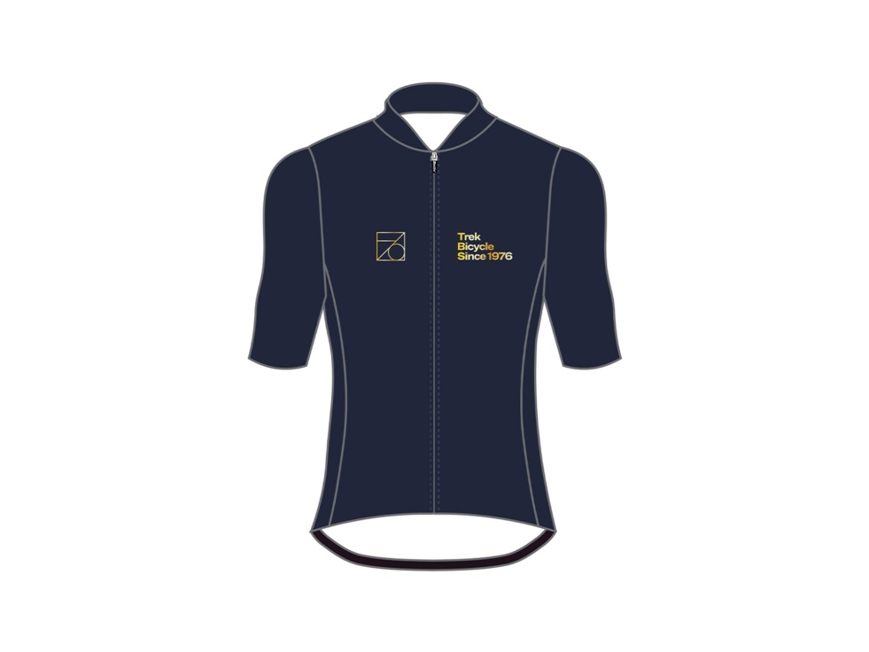 Cyklistický dres No. 76 kombinuje vizuální designové prvky nejranějších rámů Trek s moderním výkonem a pohodlím dresů Santini.