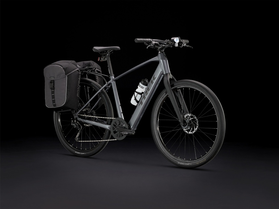 Lehký hliníkový rám a vidlice, patentovaný systém podpory šlapání Trek s motorem v náboji (250 W, 40 Nm), který poskytuje podporu až do rychlosti 25 km/h, a 250Wh baterie pro dojezd až 55 kilometrů na jedno nabití. Tuhá kola 650b, široké pláště 50c pro výkon a pohodlí na různých površích, spolehlivý 9rychlostní pohon Shimano, hydraulické kotoučové brzdy, integrovaná světla napájená z baterie a stojánek.